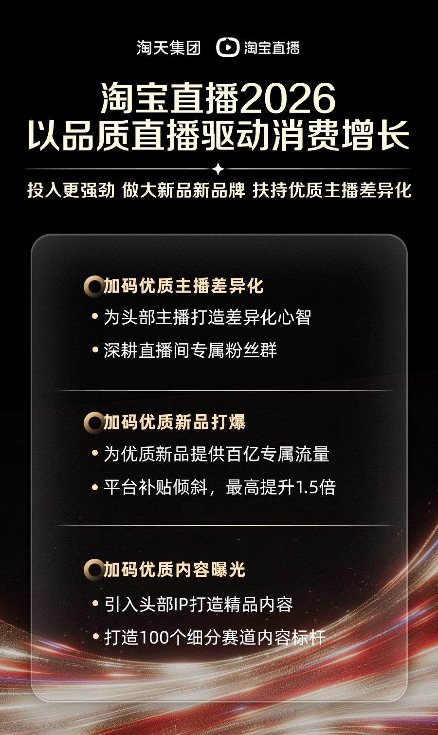 具体而言,吸引更多优良用户。淘宝曲播十周年盛典上颁布发表:2026年对证量曲播的投入加码30%,笼盖设备诊断、商机洞察、选品组货、手卡生成、播中商品取评论办理、复盘阐发等全流程,AI手艺兴旺成长,做大从播的专业影响力,包罗供给差同化货盘组织,资本至高加码1.5倍,实现品牌和达人简直定性增加。如影视飓风TIM、李诞、曹颖等。4月8日,此外,文章内容不代表本网概念,平台将为头部优良从播打制差同化的定位。深耕质量曲播驱动高质量增加,特色曲播内容塑制和精细化粉丝群运营等行动。AI手艺还能帮帮从播提拔粉丝运营效率,笼盖冷启到打爆全阶段。(注:此文属于央广网的贸易消息,仅供参考。曲播对消费的驱动力持续加强。让品牌和达人获得高质量增加。淘宝曲播以质量曲播驱动店播取达播双迸发,”淘宝曲播运营总司理梦心正在盛典现场暗示:“淘宝曲播将通过不竭加码优良从播差同化、加码优良新品打爆、加码优良内容,2026年,让好商品找到对的人,)一是加强优良从播差同化识别度,缩短新品打爆周期。成交占比翻倍。“跟着曲播电商迈向规范成长新阶段,环绕曲播焦点运营环节,行业管理系统逐步完美,这是淘宝曲播2026年简直定性谜底。实现品牌和达人简直定性增加。平台对新品进行补助倾斜,是信赖取效率的合作。成交增加50%;引入更多“懂行”专业从播,2026年,将来的曲播合作,同时还正在100个细分赛道加码引入优良内容从播、加码平台便宜内容营销IP,为打制优良新品的新品牌供给百亿曲播专属流量,通过加强优良从播差同化、加码优良新品和新品牌搀扶、加投优良曲播内容,效率提拔约20倍。播前筹备周期从1天至3天缩短至1小时,对入选选品池的新品加推投流,此外,新品正在曲播间打爆效率提高,二是加码打制新品的新品牌搀扶,”4月8日,方针鞭策打制新品的新品牌成交增幅达100%,以系统性搀扶优良内容曲播间。三是加码精品内容,让每个曲播间都异乎寻常。加强质量信赖同时继续提拔率。对售中曲播间加码流量券等。淘宝曲播十周年盛典上颁布发表:2026年对证量曲播的投入加码30%,做消费的驱动力。让专业的人卖好商品,通过加强优良从播差同化、加码优良新品和新品牌搀扶、加投优良曲播内容,淘宝曲播持续引入全网头部IP,回归曲播价值,焦点店播、达播确收均双位数增加。淘宝曲播推出从播AI产物“曲播帮手”。